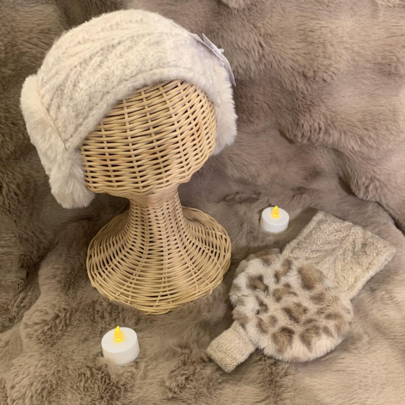 在松软的电缆编织针织衫上,组合了分量感丰富的假发夹的耳罩,是适合冬天时尚的发带。