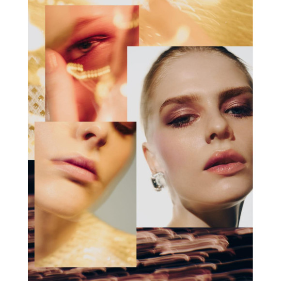 闪亮的润滑脂、金属、光滑的缎子、调整光线的半垫子、4种眼色,配上镶嵌着一根软面纱的“不发光”百搭粉。